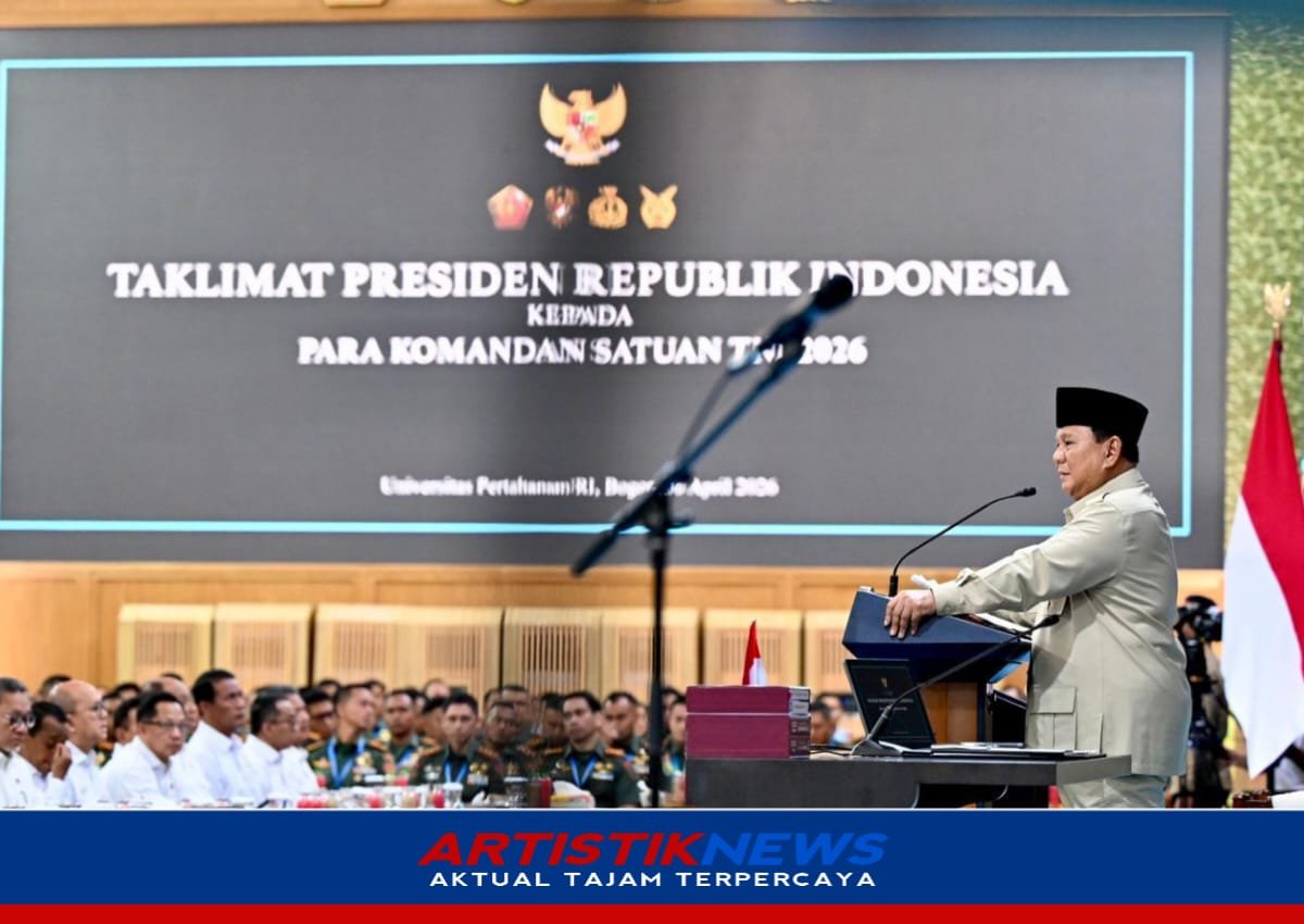 JAWABARAT, ARTISTIKNEWS.com – Presiden Prabowo Subianto menyampaikan taklimat kepada para Komandan Satuan TNI Tahun 2026 di Universitas Pertahanan, Kabupaten Bogor, Jawa Barat. Sekitar 1.500 peserta hadir dan mewakili seluruh matra TNI serta unsur terkait. Kamis (30/04/2026).