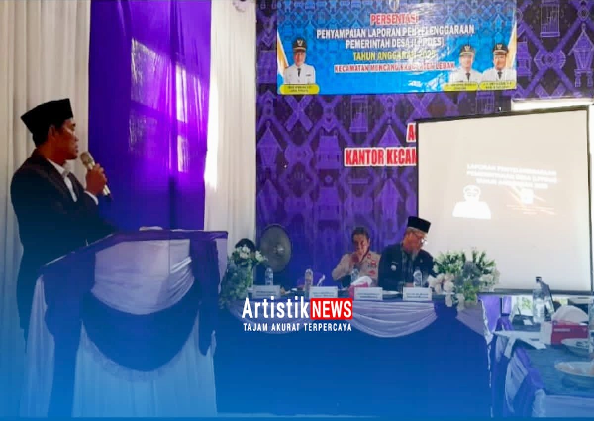 LEBAK, ARTISTIKNEWS.com – Pemerintah Desa Leuwicoo menyampaikan Laporan Penyelenggaraan Pemerintahan Desa (LPPDes) Tahun Anggaran 2025 di Aula Kantor Kecamatan Muncang, Kabupaten Lebak, Banten, Kamis (23/4/2026).